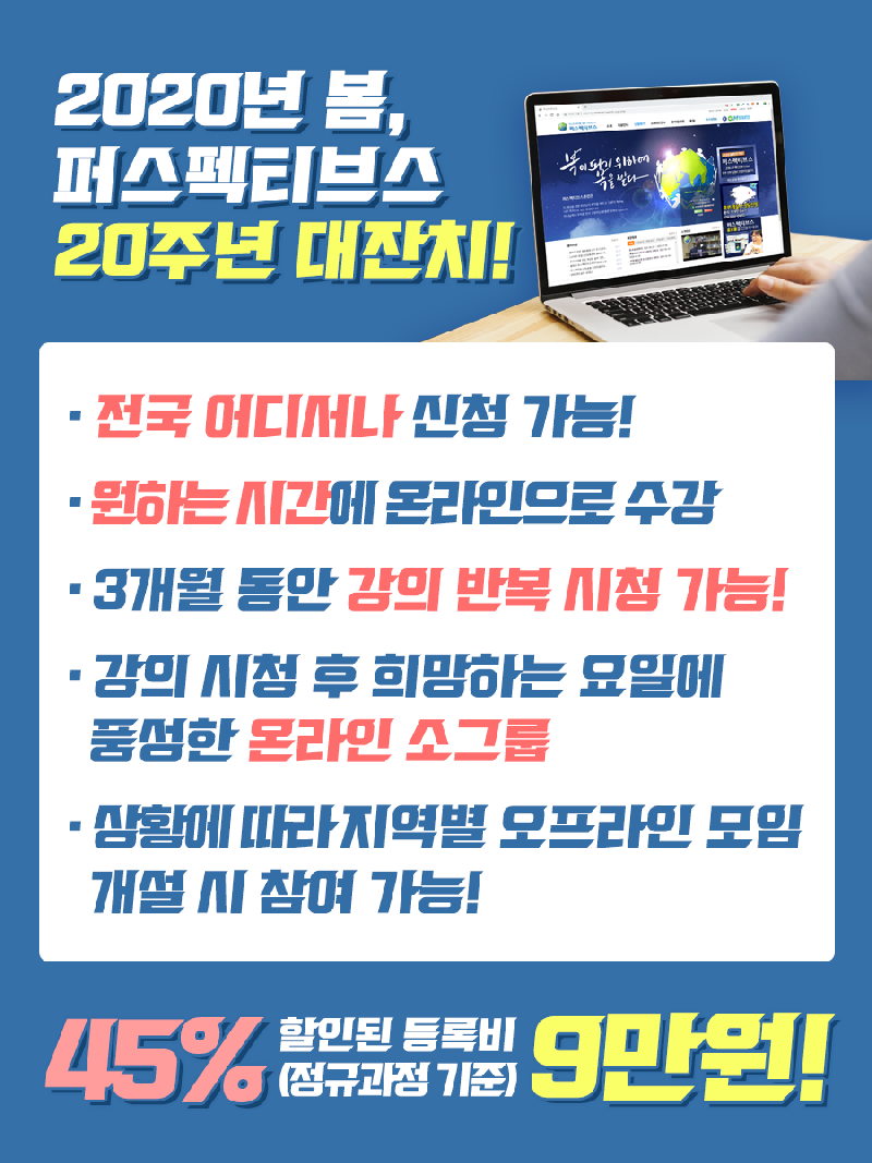 ÆÛ½ºÆåƼºê½º¿¡ Âü¿©ÇÏ°í ½ÍÀº ¸ðµç ºÐµé, ±×µ¿¾È Ŭ·¡½º°¡ °³¼³µÇÁö ¾Ê¾Æ¼ ¾Æ½¬¿ü´ø Áö¿ª ºÐµé, ¿À·¡ Àü ¼ö·á ÈÄ Àú·ÅÇÑ µî·Ïºñ·Î ´Ù½Ã µè°í ½ÍÀº ºÐµé, È¥ÀÚ °ÀǸ¦ ¿©·¯ ¹ø ´Ù½Ã µÇÇ®ÀÌÇØ¼ µè°í ½ÍÀº ºÐµé! ¸ðµÎ ÆÛ½ºÆåƼºê½º ¿Â¶óÀΠŬ·¡½º¿¡¼ ±â´Ù¸³´Ï´Ù!!! ±âȸ´Â Çѹø »Ó! À̹ø Çб⠳õÄ¡Áö ¸¶¼¼¿ä😃 ¡¡ 🌎µî·Ï ¹× ÁøÇà ¾È³»🌎 - Àü±¹ ¾îµð¼µç ¿Â¶óÀÎÀ¸·Î µî·Ï°ú Âü¿©°¡ °¡´ÉÇÕ´Ï´Ù. - µî·Ïºñ´Â 9¸¸¿ø ÀÔ´Ï´Ù.(Á¤±Ô°úÁ¤ µî·Ïºñ¿¡¼ 45% ÇÒÀÎ, ±³Àçºñ º°µµ) - 4¿ù 29ÀÏ(¼ö) ºÎÅÍ ¼øÂ÷ÀûÀ¸·Î ¸ðµç ¿äÀϺ° Ŭ·¡½º°¡ °³°ÇÕ´Ï´Ù. [4/30(¸ñ),5/1(±Ý), 5/2(Åä), 5/3(ÀÏ), 5/4(¿ù), 5/5(È)] - °³°ÀϺÎÅÍ 12ÁÖ µ¿¾È ÁøÇàµË´Ï´Ù. ¡¡ 🌎Ŭ·¡½º Âü°¡ ¾È³»🌎 - ÁÖÁß ¿øÇÏ´Â ½Ã°£¿¡ ¿Â¶óÀÎÀ¸·Î °ÀǸ¦ µéÀ» ¼ö ÀÖ½À´Ï´Ù. - ¿øÇÏ´Â ¿äÀÏ Àú³á 8-10½Ã°æ Çѽ𣠵¿¾È ¿Â¶óÀÎ ¼Ò±×·ìÀÌ ÁøÇàµË´Ï´Ù. - 3°³¿ù µ¿¾È ¸ðµç °ÀǸ¦ ¹Ýº¹Çؼ µéÀ» ¼ö ÀÖ½À´Ï´Ù. - »óȲ¿¡ µû¶ó °³¼³µÇ´Â Áö¿ªº° ¿ÀÇÁ¶óÀÎ ¸ðÀÓ¿¡ Âü¿©ÇÒ ¼ö ÀÖ½À´Ï´Ù. ¡¡ *º» °úÁ¤Àº 2020³â º½Çб⿡¸¸ °³¼³µË´Ï´Ù. *¼¿ï/°æ±â Áö¿ª¿¡¼´Â '¿Â¿ÀÇÁ¶óÀΠŬ·¡½º'¿¡ Âü°¡ÇÏ½Ç ¼ö ÀÖ½À´Ï´Ù. 5ÁÖÀÚºÎÅÍ ÇöÀå °ÀÇ·Î ÁøÇàµÇ¸ç, ¿ÀÇÁ¶óÀÎ ¼Ò±×·ì°ú Ưº°È°µ¿ÀÌ ÁغñµÇ¾î ÀÖ½À´Ï´Ù. ¡¡ 🔽Ŭ·¡½º ½Åû🔽 http://missionpartners.kr/mp/register_l.php ¡¡ 🔽¹®ÀÇ🔽 02-889-6400 ¹Ì¼ÇÆÄÆ®³Ê½º |