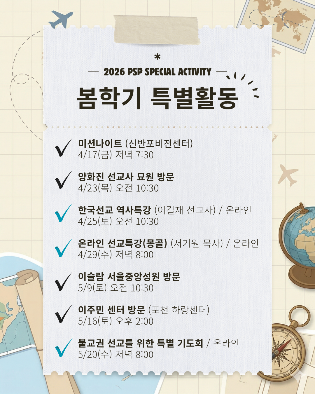 ÆÛ½ºÆåƼºê½º¿Í ÇÔ²², ¼±±³¸¦ ¡®Á÷Á¢ °æÇèÇÏ´Â ¿©Á¤¡¯¿¡ ÃÊ´ëÇÕ´Ï´Ù! 2026³â º½Çбâ, ÆÛ½ºÆåƼºê½º °ÀÇ¿Í ¿¬°èµÈ dz¼ºÇÑ Æ¯º°È°µ¿ÀÌ ¿©·¯ºÐÀ» ±â´Ù¸³´Ï´Ù. °ÀÇ¿¡¼ ¹è¿î ¼±±³¸¦, Á÷Á¢ º¸°í µè°í °æÇèÇÏ´Â ½Ã°£À¸·Î À̾îÁý´Ï´Ù. 📌 ¹Ì¼Ç ³ªÀÌÆ® (4/17 ±Ý, Àú³á 7½Ã 30ºÐ / ½Å¹ÝÆ÷ºñÀü¼¾ÅÍ) WEC ±¹Á¦ º»ºÎÀÇ ¼±±³»çµé°úÀÇ ¸¸³²À» ÅëÇØ Âü¿©ÀÚµéÀÌ ½ÇÁ¦ ¼±±³»çµé°úÀÇ ¸¸³²À» ÅëÇØ, ¼±±³ÀÇ »îÀ» ´õ °¡±îÀÌ º¸°í ´ÙÀ½ °ÉÀ½À» °í¹ÎÇØº¸´Â ½Ã°£ÀÔ´Ï´Ù. - ¸¶Æ¾/Á¶À̽º Ä·º§ (WEC ±¹Á¦ºÎÃÑÀç) - ¸ÅÆ© ¸Æ³ÎƼ (WEC Training ´ã´ç) - Å뿪 : ÀÌÅ¿Ï/À¯ÇöÁ¤ ¼±±³»ç <¼¿ï µ¿ÀÛ±¸ µ¿ÀÛ´ë·Î43±æ 3 ½Å¹ÝÆ÷±³È¸ºñÀü¼¾ÅÍ> 📌 ¾çÈÁø ¼±±³»ç¹¦¿ø ¹æ¹® (4/23 ¸ñ ¿ÀÀü 10½Ã 30ºÐ / ¾çÈÁø¿Ü±¹Àμ±±³»ç¹¦¿ø) ¼ø±³¿Í Çå½ÅÀÇ »îÀ» ±â¸®´Â Àå¼Ò¿¡¼ ¹ÏÀ½À¸·Î »ì¾Æ³½ ¼±±³»çµéÀÇ À̾߱⸦ µû¶ó °ÉÀ¸¸ç, ¼±±³ÀÇ Àǹ̸¦ ´Ù½Ã ¸¶À½¿¡ »õ±é´Ï´Ù.