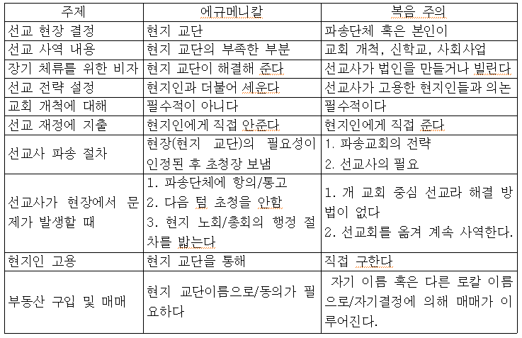 ¼±±³ÇöÁö ÇàÁ¤ ½Ã½ºÅÛ -Field Orientation- °´ëÈï 1. µé¾î°¡´Â ¸» ¼±±³»ç·Î ÆÄ¼ÛÀ» ¹ÞÀº ÈÄ Çʵ忡 ´ëÇØ ºÎ´ã °®Áö ¾ÊÀº ¼±±³»ç´Â ¾øÀ» °ÍÀÌ´Ù. ´ëºÎºÐÀÇ ¼±±³»çµéÀº Ã¥¹« °ü°è¿¡ ÀÖ¾î¼ ¼±±³Áö ȤÀº »ç¿ªÀ» º»±¹ÀÇ ÈÄ¿ø ´Üü º¸´Ù Priority¸¦ µÎ°í »ç¿ªÀ» ÇÑ´Ù. ±×·¯¹Ç·Î ¼±±³»çµéÀÌ ¼±±³¿¡ ÀÖ¾î¼ »ç¿ª ÇöÀåÀ» °Á¶ÇÏ´Â °ÍÀº ´ç¿¬ÇÑ ÀÏÀÌ´Ù. ¶ÇÇÑ ¼±±³»ç °¡Á·ÀÌ »ç¿ªÁö¿¡¼ ÇöÁöÀΰú °°ÀÌ »îÀ» ¼¯°í »ç´Â ¸ð½ÀÀº ´ç¿¬ÇÑ ÀÏÀÌ´Ù. ÀÌ·± »ùÇõéÀÌ Àֱ⿡ ¼±±³»ç°¡ ¼±±³ ÇöÀå¿¡¼ ÇöÁöÀεé°ú °°ÀÌ »ê´Ù´Â °ÍÀº ½¬¿î ÀÏ·Î ÀÌÇØµÇ°í ÀÖ´Ù. ±×·± »ùÇõéÀ» ¼±±³Áö¿¡¼ ½±°Ô º¸±â ¶§¹®ÀÌ´Ù. ±×·¯³ª Ãʳ⠼±±³»çµéÀÌ ÇÑ ÅÒ Á¤µµ »ç¿ªÀ» ÇÑ ÈÄ¿¡ ÀÚ³à ±³À° ¶§¹®¿¡, ȤÀº Ưº°ÇÑ Áö¹æ »ç¿ª ¶§¹®¿¡ ºÎºÎ°¡ º°°ÅÇÏ°í »ç´Â ÀÏ¿¡ ´ëÇØ¼ ½±°Ô µ¿ÀÇÇÏ·Á´Â °æÇâÀÌ ÀÖ´Ù. ¼±±³»ç´Â ÇöÁöÀεé°ú »ç¿ªÇϱâ À§ÇØ ¿Ô±â¿¡ ±×·± »ç¿ªµéÀº ¾î¶² °æ¿ì¿¡µµ ÇöÁöÀεéÀÇ »ý°¢À» ¹«½ÃÇÏ°í °áÁ¤Çϱâ´Â ¾î·Á¿î °ÍÀÌ´Ù. ±×·¯±â¿¡ ÇÊµå ¿À¸®¿£Å×À̼ÇÀº ¼±±³Áö¿¡ ¸· µµÂøÇÑ Ãʳ⠼±±³»çµé¿¡°Ô´Â ¸» ÇÒ °Íµµ ¾ø°í, ¾È½Ä³âÀ» ´Ù³à¿Â ¼±±³»çµéµµ ¼±±³ ÇöÀå¿¡ ÀçÅõÀԵDZâ Àü¿¡ ¹Ýµå½Ã ¿À¸®¿£Å×À̼ÇÀ» °¡Á®¾ß ÇÑ´Ù. ±×·¯¹Ç·Î ÇÊÀÚ¿¡°Ô ÁÖ¾îÁø ¹ßÁ¦ ¾È ÇöÁö ÇàÁ¤ ½Ã½ºÅÛÀÇ field orientation¿¡ ´ëÇØ¼ ¼±±³»çµé°ú °ü·ÃÇÏ¿© ´ÙÀ½°ú °°ÀÌ ¹ßÁ¦Çϵµ·Ï ÇϰڴÙ. ÀÌ ±ÛÀº ¿¸° Áö¿ª¿¡¼ÀÇ ¼±±³»çµéÀ» »ý°¢ÇÏ°í ¾²¿´´Ù. 1. ¿¡Å¥¸Þ´ÏÄ®°ú º¹À½ÁÖÀÇ ¼±±³ÀÇ ÇöÁöÇàÁ¤½Ã½ºÅÛ°ú ¼±±³»ç Field Orientation°ú °ü·ÃÇÏ¿© 2. ¼±±³»ç°¡ ÇöÁö µµÂø ÇÑ ÀÌÈĺÎÅÍ ¼±±³ÇöÀå¿¡ Á¤ÂøÇϱâ Àü±îÁö 3. ¼±±³»ç°¡ »ç¿ªÀ» ÇÏ¸é¼ °í·ÁÇØ¾ß ÇÒ »çÇ× µéÀÌ´Ù. 4. Çʵå ÈÆ·ÃÀ» ¹ÞÁö ¸øÇÏ´Â ¼±±³»çµéÀÌ ÀÖ´Ù. À̵鿡 ´ëÇØ ¸î °¡Áö Á¦¾ÈÀ» ÇϰíÀÚ ÇÑ´Ù. ¾Æ¹«ÂÉ·Ï Çѱ¹ ±³È¸¿¡¼ ÆÄ¼Û ¹ÞÀº ¼±±³»ç°¡ Çʵ忡 ´ëÇÑ, ÇöÁö ±³È¸¿¡ ´ëÇÑ Committment°¡ Àß ÀÌ·ç¾îÁö±â¸¦ ¹Ù¶õ´Ù. 1. ¿¡Å¥¸Þ´ÏÄ® °ú º¹À½ÁÖÀÇ ¼±±³ÀÇ ÇöÁö ÇàÁ¤ ½Ã½ºÅÛ : ¼±±³»ç ÇÊµå ¿À¸®¿£Å×À̼ǰú °ü·ÃÇÏ¿© ¼±±³»çµéÀÇ Çʵå ÈÆ·ÃÀº ¼±±³ ÇöÀåÀÇ Receiving bodyÀÇ ½ÇÁ¦ÀûÀÎ ¿ªÇÒ¿¡ µû¶ó ´Þ¶óÁø´Ù. ¿¡Å¥¸Þ´ÏÄ® ±³È¸µéÀº ÀϹÝÀûÀ¸·Î ±³È¸ÀÇ ¼º¼÷ ´Ü°è¿¡ µû¶ó¼ ¼±±³¿Í ¼±±³»ç¿¡ ´ëÇÑ ÀÌÇØ°¡ ´Þ¶óÁø´Ù. ¿¹¸¦ µé¸é Sending Church°¡ ¼±±³»ç¸¦ ÆÄ¼ÛÇÏ¿´Áö¸¸ Receiving Church¿¡ µû¶ó¼ Missionary¶ó ºÎ¸£±âµµ Çϰí, Fraternal worker¶ó°í ºÎ¸£±âµµ ÇÑ´Ù. ÀϹÝÀûÀ¸·Î WCC ȤÀº CCA ±×¸®°í WARCÀÇ °¡¸Í ±³´ÜµéÀº Àü ¼¼°è ¾î´À ³ª¶ó¿¡ ÀÖ´øÁö ¼·Î °£À» ÇüÁ¦ ±³´ÜÀ¸·Î ÀÎÁ¤ Çϰí ÀÖ´Ù. ±×·¯¹Ç·Î ¼±±³»ç¸¦ ÆÄ¼ÛÇÏ´Â °ÍÀÌ »ó´ë¹æÀÇ ±³È¸¿Í ´õºÒ¾î ¿¡Å¥¸Þ´ÏÄ® ¿îµ¿À» ÇÑ´Ù°í »ý°¢Çϰí ÀÖÀ¸¸ç, ÀÌ·± °æ¿ì ¼±±³»çµéÀÇ ÆÄ¼ÛÀº ±³´Ü ´ë ±³´ÜÀÇ ÀÔÀå¿¡¼ ÀÌ·ç¾îÁö°í ÀÖ´Ù. ¼±±³Áö ±³È¸µéÀº ÀÚ±âµéÀÌ °¨´çÇÏÁö ¸øÇÏ´Â ºÎÁ·ÇÑ ºÎºÐ¿¡ À־¸ ÇüÁ¦ ±³´Ü¿¡°Ô ¼±±³»ç ÆÄ¼ÛÀ» ÀÇ·ÚÇÏ°Ô µÈ´Ù. ±×¸®°í ÆÄ¼ÛµÈ ¼±±³»ç´Â ¼±±³ÁöÀÇ ÇüÁ¦ ±³´Ü¿¡ ¼Ò¼ÓµÇ´Âµ¥ ¿¹¸¦ µé¸é ¼±±³Áö ±³È¸°¡ Àå·Î±³È¸ÀÎ °æ¿ì ¼±±³»çµéÀº Áö¿ª ³ëȸ¿¡ ¼Ò¼ÓÀÌ µÇ°í, °¨¸®±³ÀÎ °æ¿ì´Â Áö¹æ ȸ¿¡ ¼Ò¼ÓµÈ´Ù. ±×¸®°í ¼±±³»çµéÀº ·ÎÄ® ¸®´õ½Ê ¾Æ·¡¿¡¼ »ç¿ªÀ» ÇÏ°Ô µÈ´Ù. (1) ´ëÇÑ ¿¹¼ö±³ Àå·ÎȸÀÇ °æ¿ì 1955³â 4¿ù ´ëÇÑ ¿¹¼ö±³ Àå·Îȸ ÃÑȸ¼®»ó¿¡¼ ű¹ ¼±±³»ç·Î ÆÄ¼ÛÀ» ¹ÞÀº ±è¼º±Ç, ÃÖÂù¿µ ¸ñ»çÀÇ ÆÄ¼Û ¿¹¹è´Â ´ç½Ã ¹Ì±¹ Àå·Î±³ÀÇ ´º½º ´ã´ç ±âÀÚ°¡ ÀϺη¯ Çѱ¹À» ã¾Æ¿Í¼ ÃÖÂù¿µ ¸ñ»çÀÇ ¼±±³ Çå½Å µ¿±â¿Í ÃÑȸÀÇ ¼±±³»ç ÆÄ¼ÛÀ» À§ÇÑ È¸ÀÇ, ±×¸®°í ÆÄ¼Û ¿¹¹è¸¦ ÃÔ¿µÇÏ¿´°í, À̸¦ ÆíÁýÇÏ¿© ¼±±³ º¸°í ´º½º ¿µÈ¸¦ ¸¸µé¾î ´ç½Ã Àü ¼¼°è ¹Ì±¹ Àå·Î±³È¸°¡ »ç¿ªÇϰí ÀÖ´ø Àü Áö¿ª¿¡ ¼Ò°³ ÇÏ¿´´Ù. 1955³â ű¹ ±âµ¶±³ ÃÑȸ¿¡ ÆÄ¼ÛÀ» ¹Þ°Ô µÇ´Â ÃÖÂù¿µ ¸ñ»ç¿¡°Ô ¹Ì±¹ÀÇ ¼±±³ ´ã´ç ±âÀÚ´Â ÃÖ ¸ñ»ç¸¦ Missionary ¶ó°í ¼Ò°³ÇÏÁö ¾Ê°í, fraternal worker ¶ó°í ¼Ò°³¸¦ Çϰí ÀÖ´Ù. ±×·¯¹Ç·Î ¿¡Å¥¸Þ´ÏÄ® Áø¿µ¿¡¼´Â Áö¿ª¿¡ µû¶ó ´Ù¸£±â´Â ÇÏ¿©µµ °¡±ÞÀû Á¦±¹ÁÖÀÇÀûÀÎ ³¿»õ°¡ ³ª´Â ¼±±³»ç¶ó´Â ´Ü¾îº¸´Ù´Â °ø½ÄÀûÀ¸·Î´Â ¾ðÁ¦³ª µ¿¿ªÀÚ¶ó´Â ´Ü¾î¸¦ ¼±È£ÇÑ´Ù. ·ÎÄÃÀÇ Áöµµ¾Æ·¡¿¡¼ ¼±±³»ç¿ª ½ÃÀÛ ±×¸®°í ÆÄ¼Û ¹ÞÀº ¼±±³»ç´Â ¼±±³ ÇöÀå¿¡ ¿Â ÀÌÈĺÎÅÍ´Â ·ÎÄÃÀÇ ¸®´õ½Ê ¾Æ·¡¿¡¼ »ç¿ªÀ» ÇÏ°Ô µÇ°í, ·ÎÄÃÀÌ °¨´çÇ